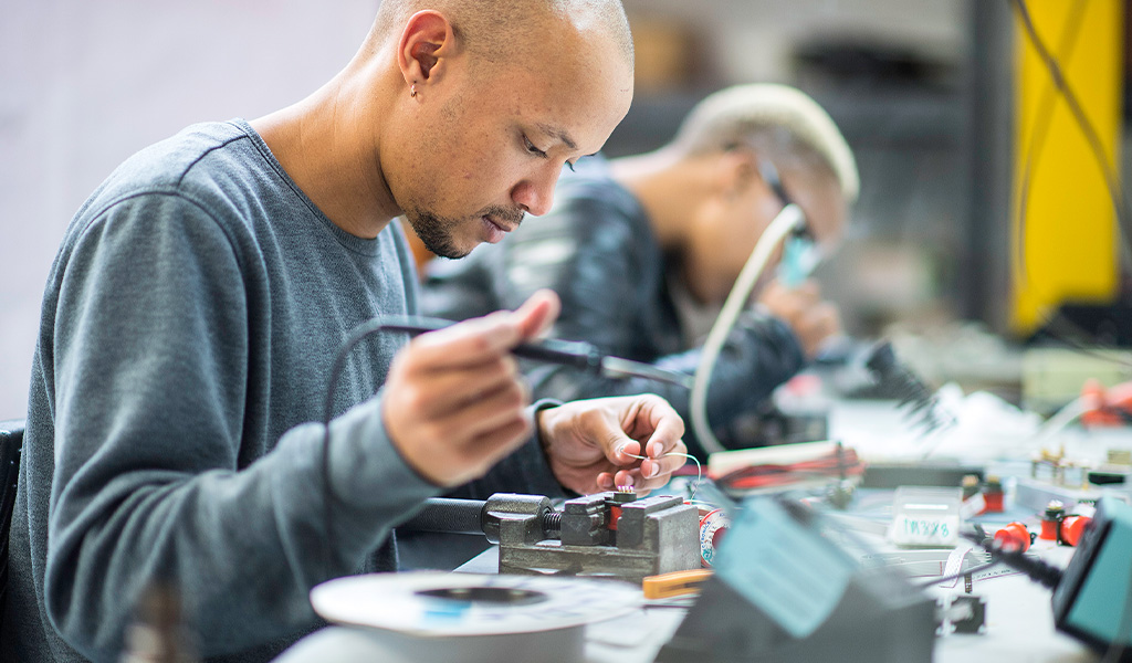Electrician wiring a diamond sorter