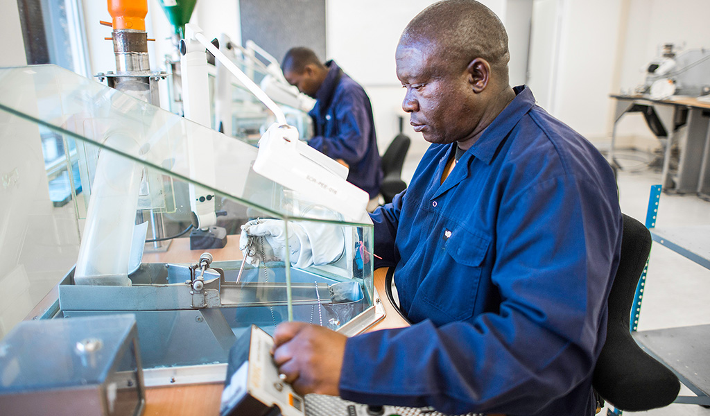 Metallurgical Engineer characterising a kimberlite sample