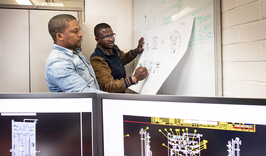 Design draughtsmen reviewing a design