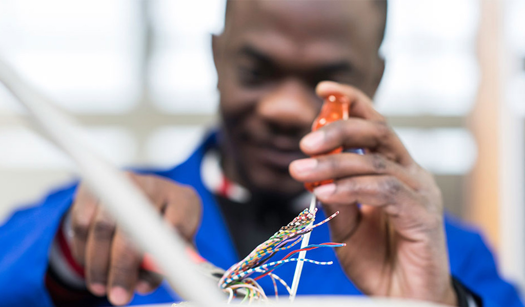 Electrician wiring a diamond sorter