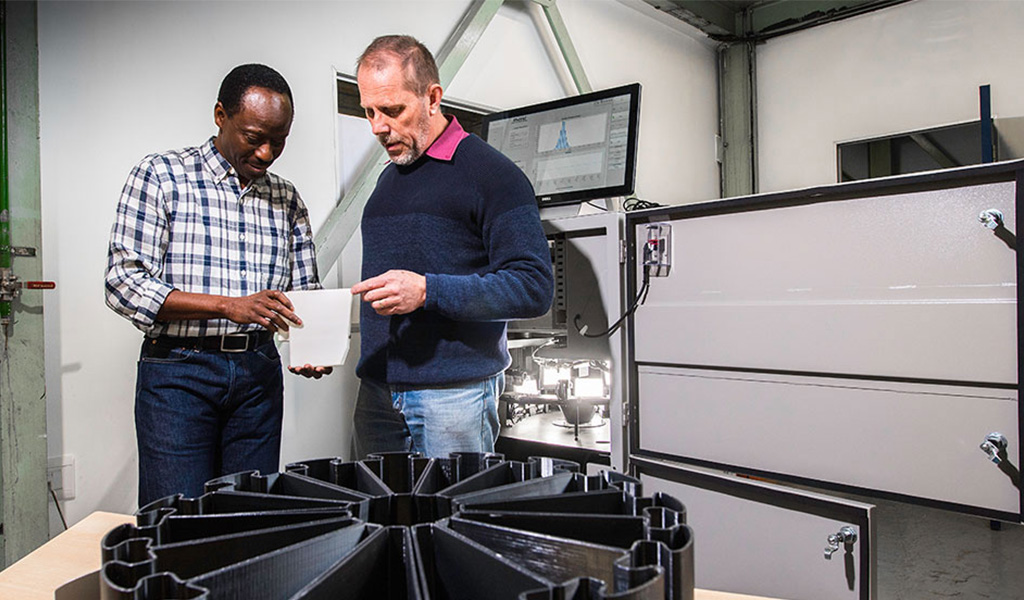 Scientists callibrating the RhoVol particle density unit